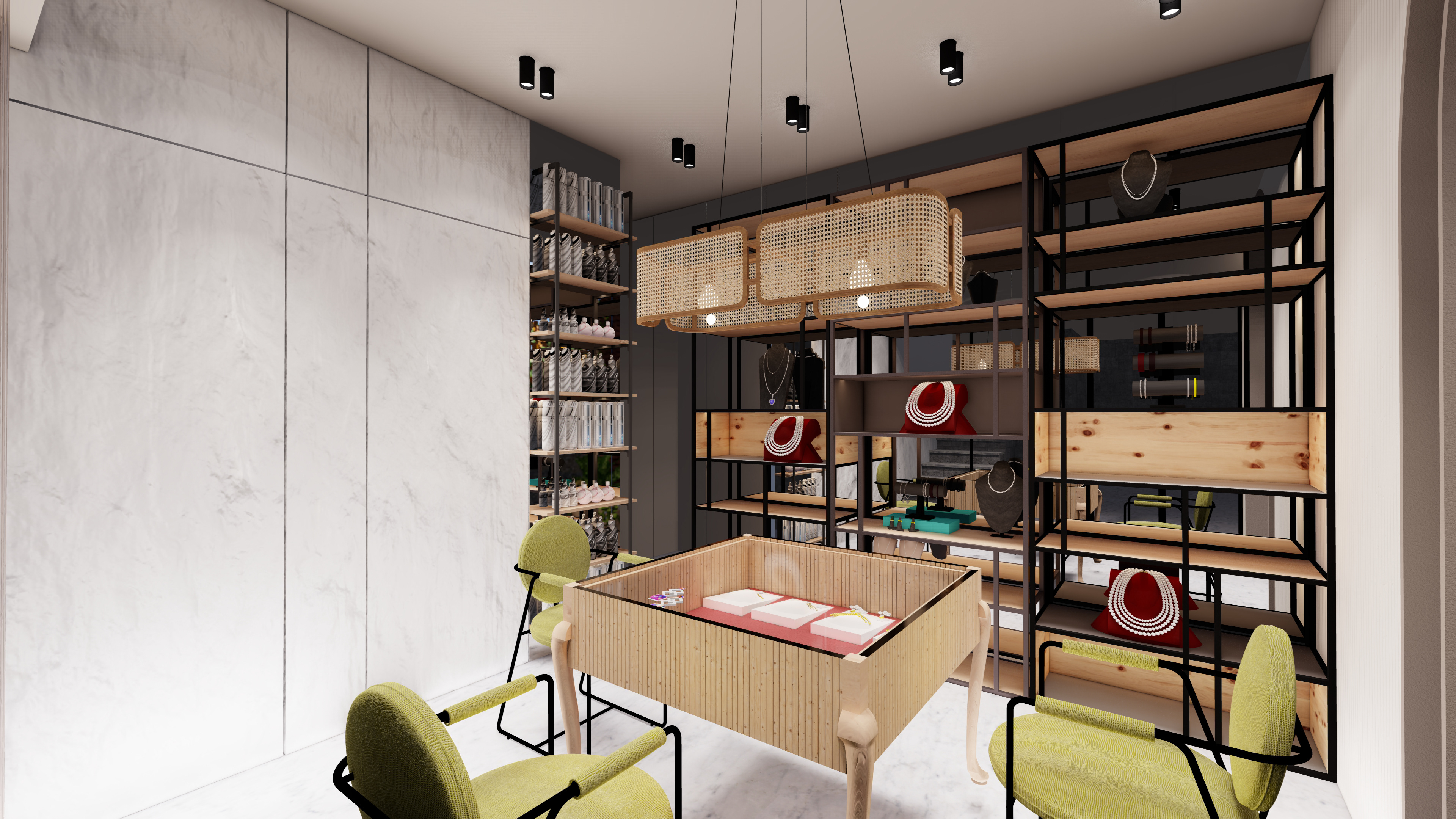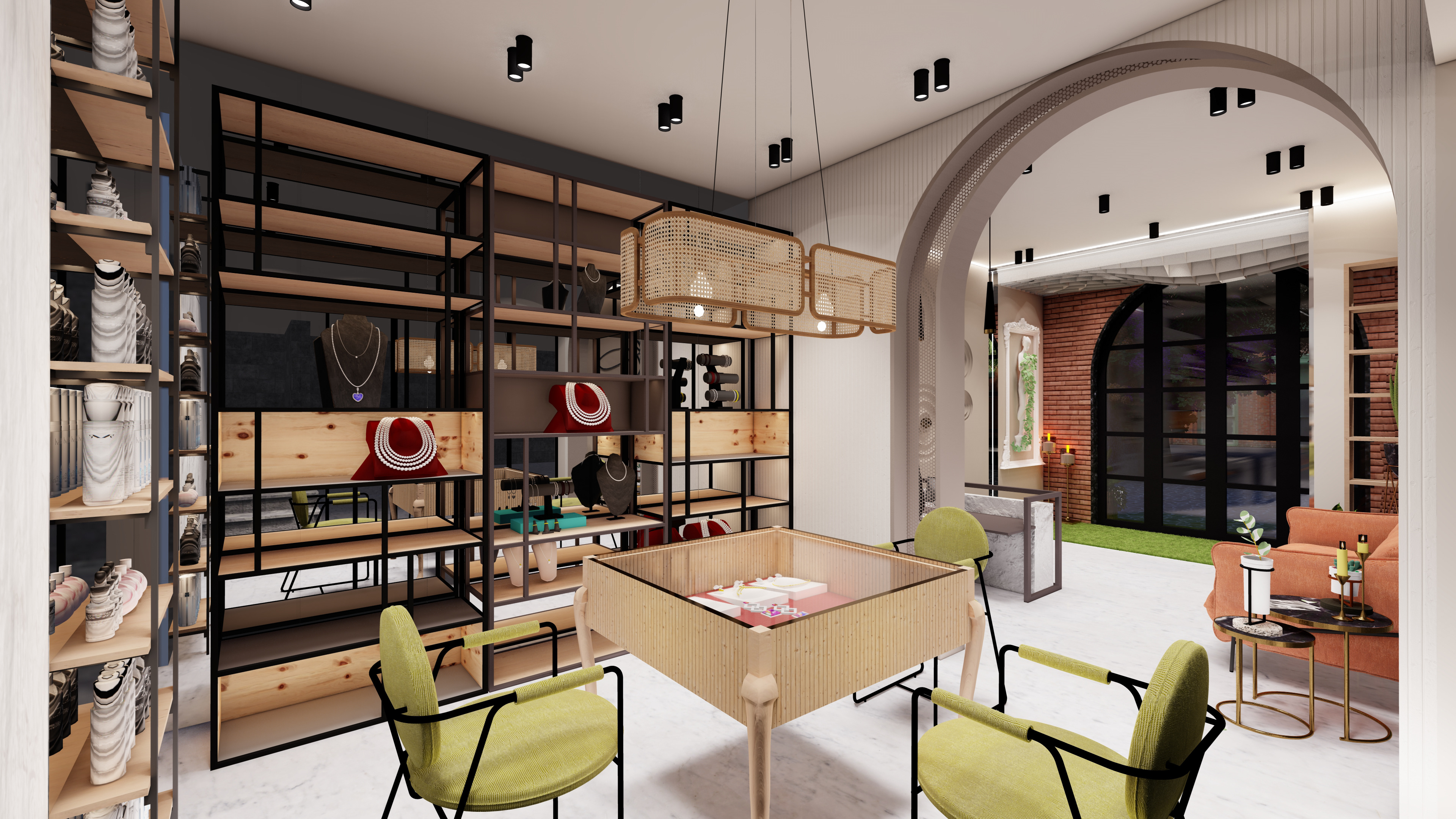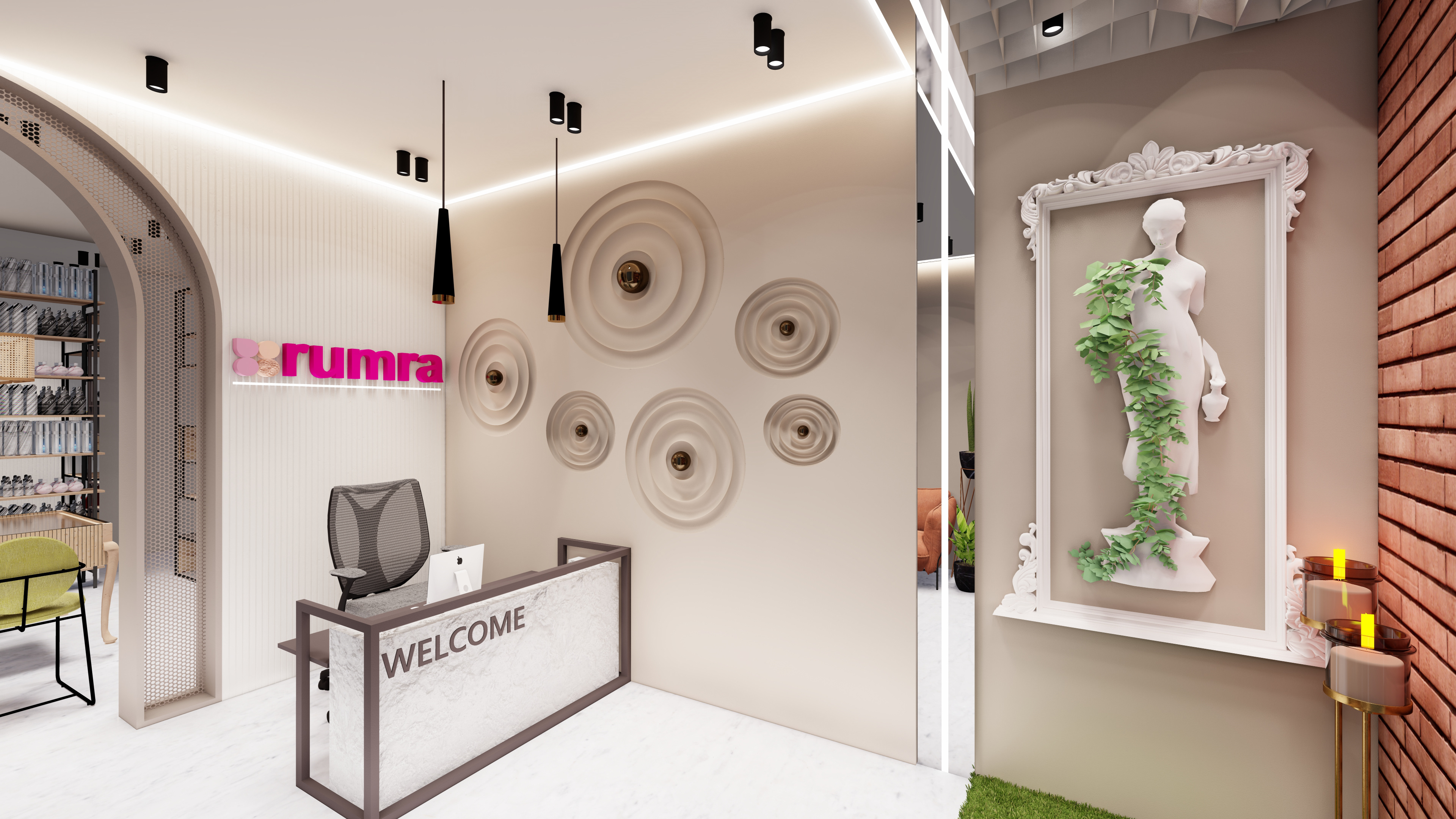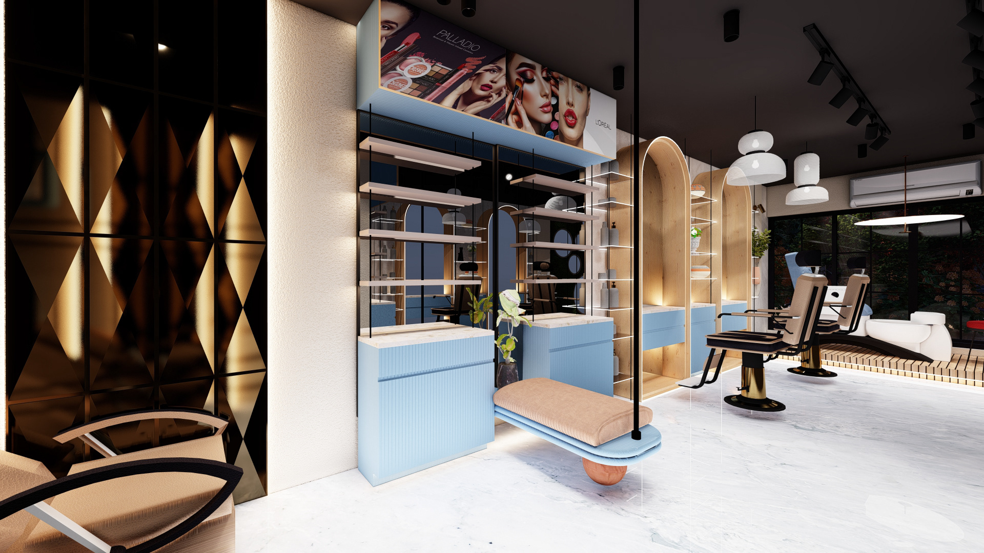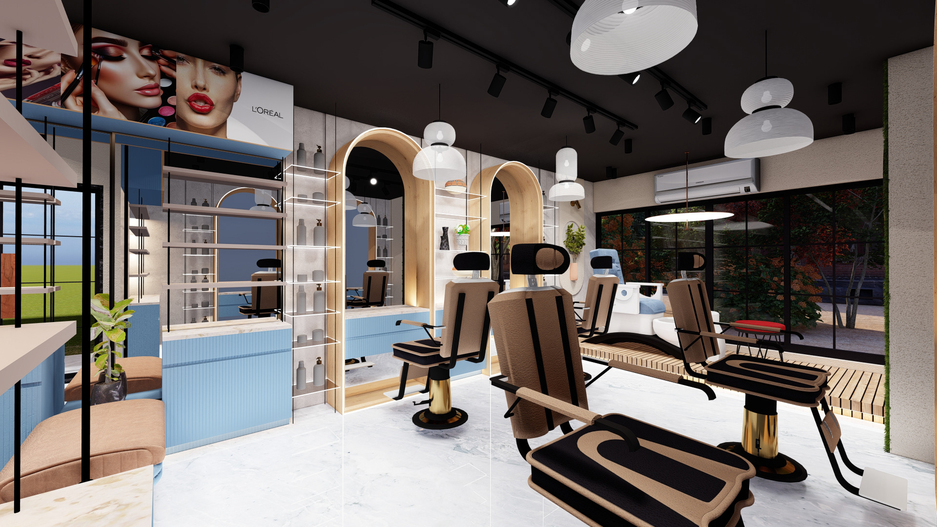 This interior project is designed as a refined and functional salon and bridal studio, spread across two levels. The ground floor features a welcoming reception and an elegantly designed bridal studio with soft lighting, curated displays, and a calm, luxurious ambience for personalised client interactions. The first floor houses a modern salon with well-planned styling stations, ergonomic seating, and balanced lighting, ensuring comfort and efficiency. A consistent material palette and clean design language tie both floors together, creating a cohesive and premium interior experience.